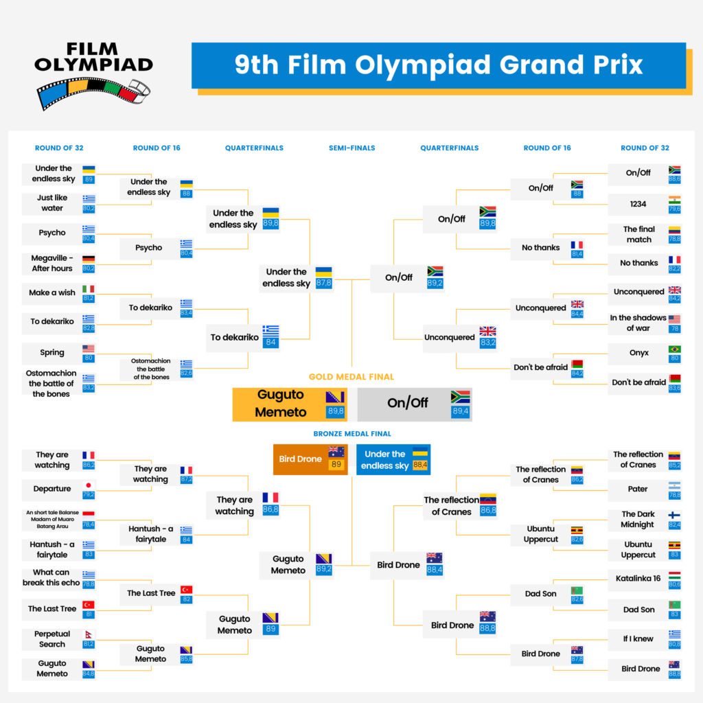 🇧🇦🥇With a great finish off, “Guguto Memeto” progressed round by round into becoming the Best Film Gold medalist, entitled also for the prize money award that Film Olympiad awards to all its Grand Prix winners! “Guguto Memeto” was also deeply loved by our audience, getting a bronze medal at the People’s Choice award.